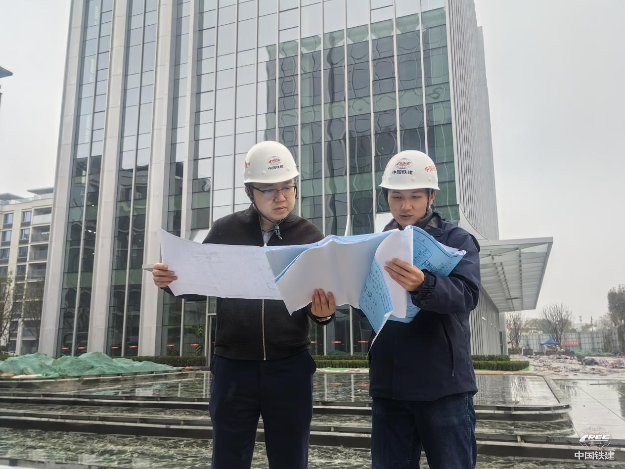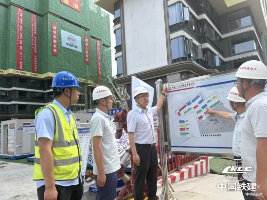 王明志(左)現(xiàn)場(chǎng)調(diào)研指導(dǎo)工作(中鐵地產(chǎn)西南公司 供圖)